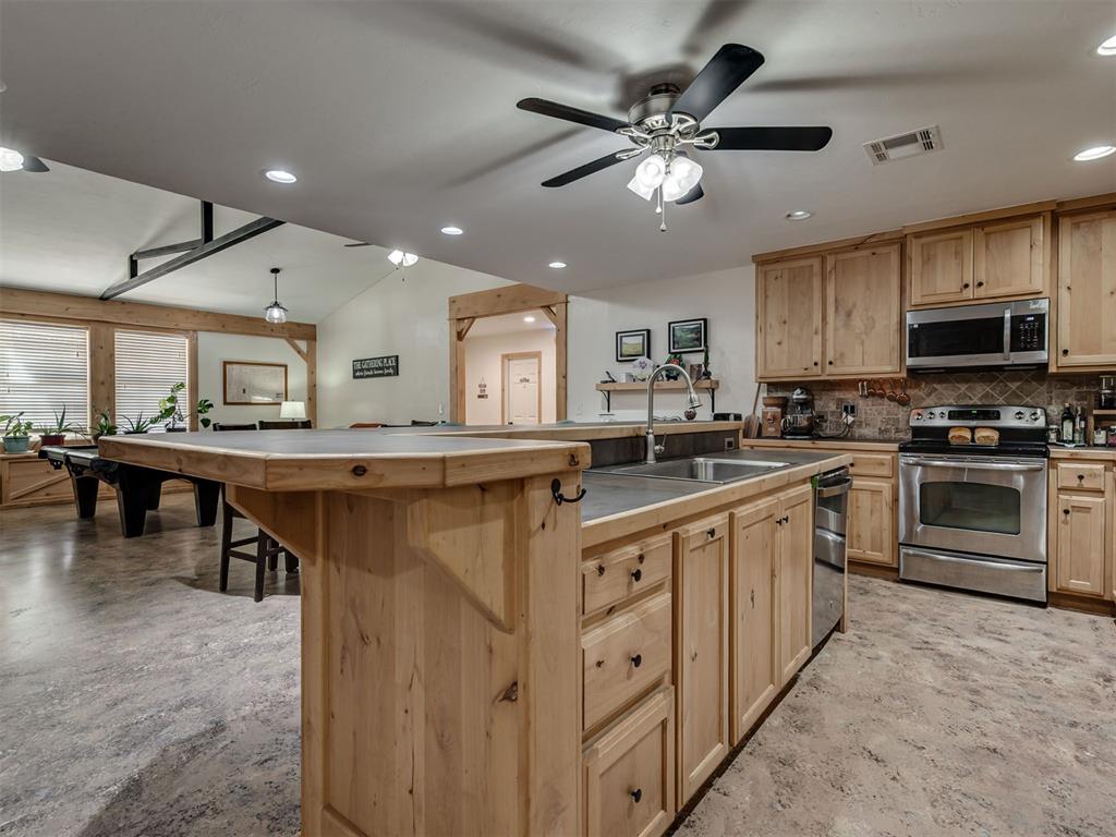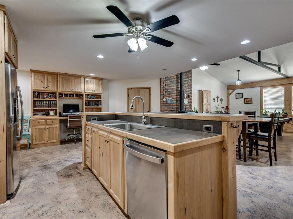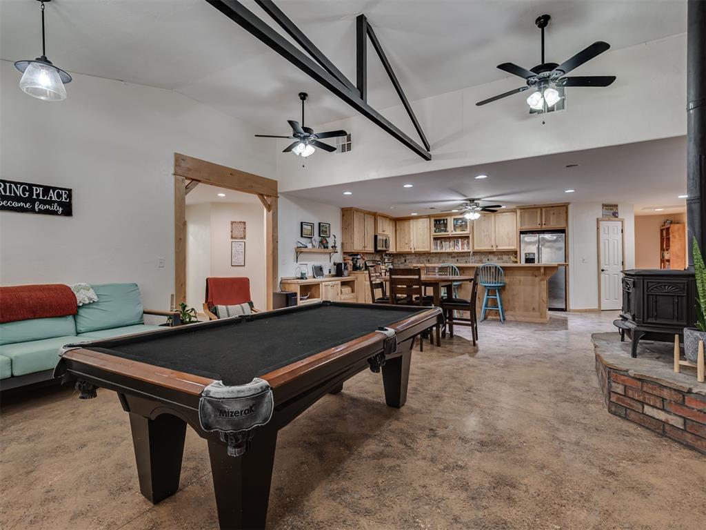 The heart of the home is the expansive great room that includes the kitchen, dining, & living space featuring vaulted ceilings and tons of natural light. The kitchen has stainless steel appliances, abundant counter space, a breakfast bar, & a large walk-in pantry. The livingroom has a cozy wood-burning stove. This space is perfect for gathering, cooking, & making memories. Everyday living is effortless with an oversized laundry room & dedicated home office space PLUS a 2nd living space that features a wetbar. It could easily be a den, bonus room, or a home school space.