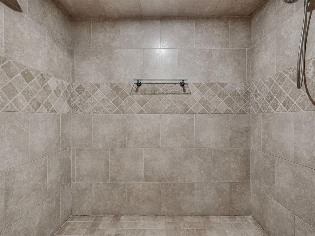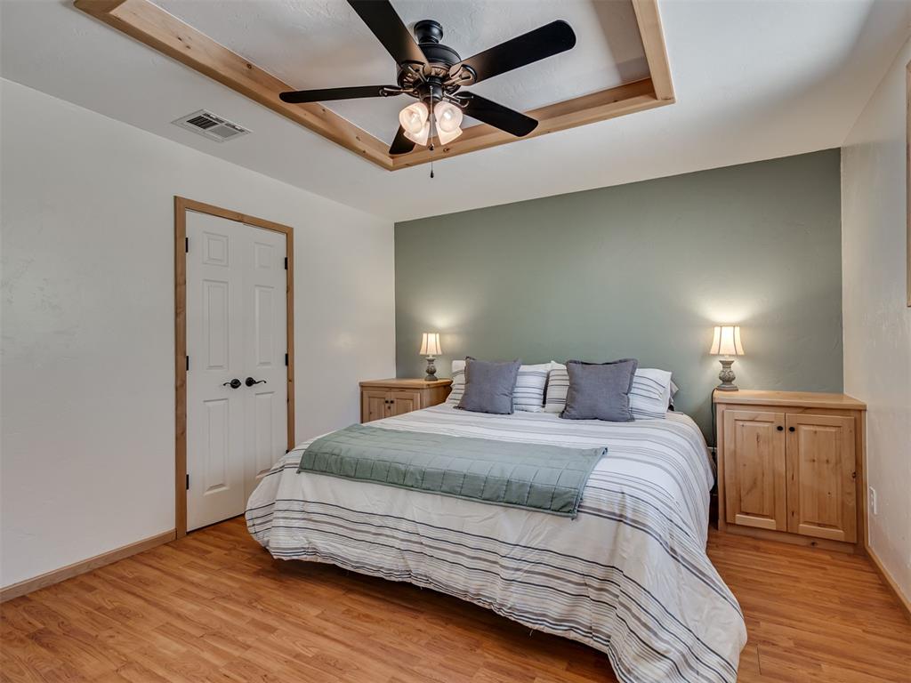 The spacious primary suite feels like its own private getaway, complete with a tray ceiling, oversized walk-in closet, & private bath with oversized double shower. Two additional bedrooms share a hall bathroom.