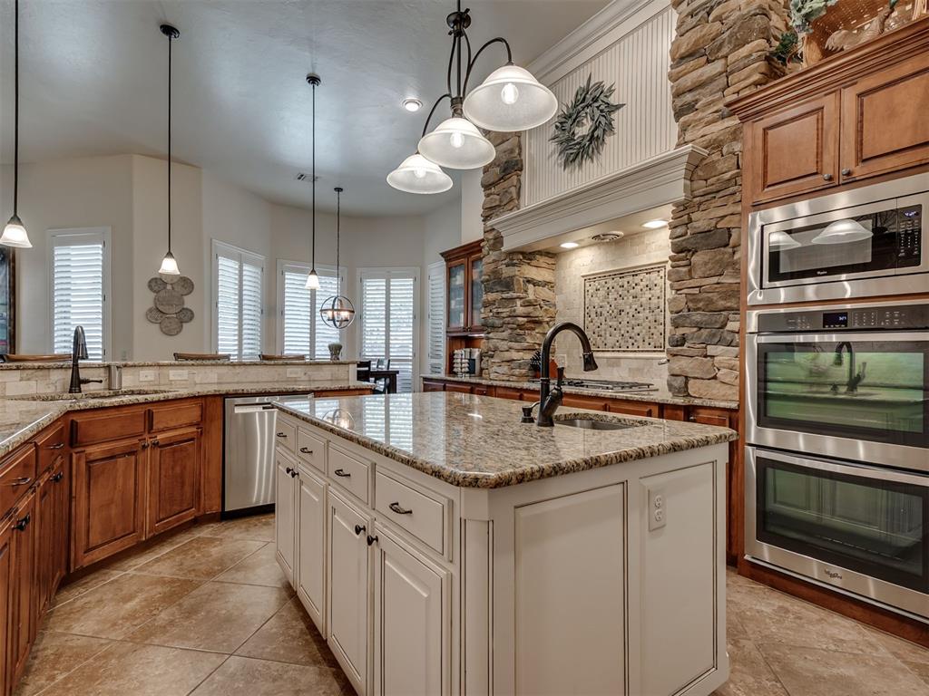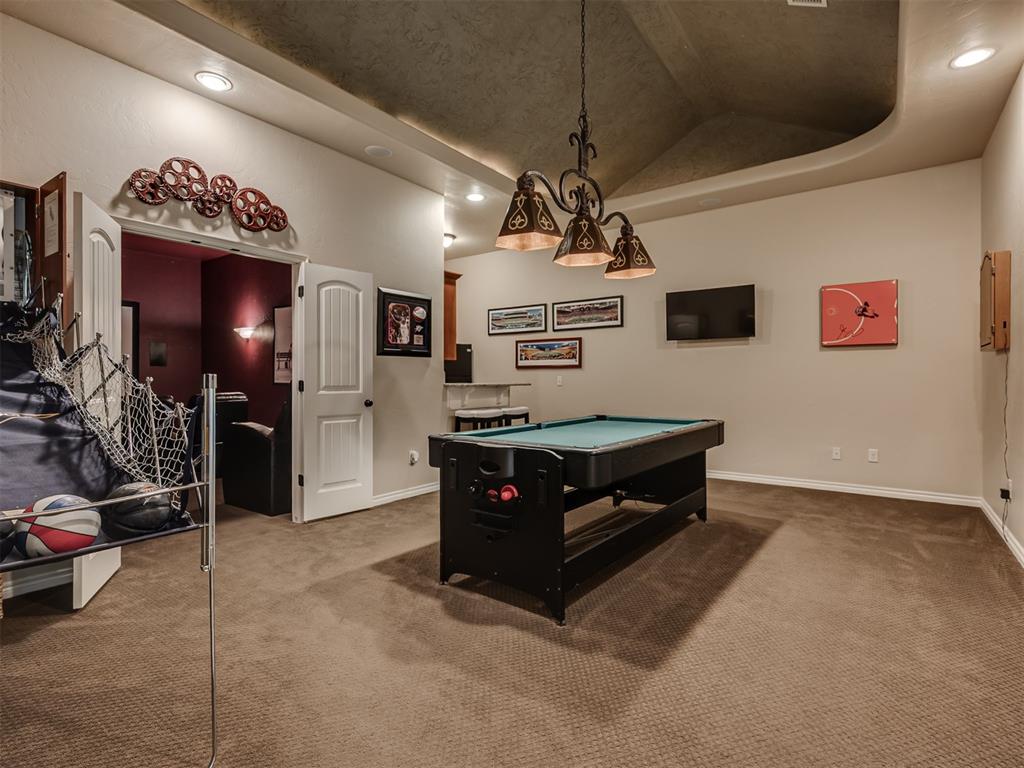 BEAUTIFUL Resort-Style, Multi-Generational retreat in Edmond! This extraordinary home offers over 5,000 sq. ft. of luxury living designed for entertaining, relaxing, and multi-generational comfort with tons of natural light. With 4 bedrooms, 3.5 bathrooms, 2 true living areas, 2 dining spaces, a game room/living area, private theatre room/living area, and a designated office, there's room for every lifestyle. The thoughtful 3-way split floorplan provides both privacy and flexibility. The primary suite features its own private living area and spa-like bath with his and hers closets, creating a true retreat. The second suite also includes an attached living space, full bathroom with shower, and full walkin closet, perfect for extended guests, parents/in-laws, or any loved one. With five walk-in closets and extra hall closets, storage is abundant throughout the home. Designed with both elegance and function in mind, the spacious chefs kitchen (which includes a massive island with prep sink) and dining areas set the stage for gatherings of any size. Entertain in style with multiple living spaces, host family movie nights in the theatre room, or enjoy fun and games in the large game room. The designated office adds even more flexibility, ideal for working from home in comfort. Step outside to your own private paradise. The resort-style heated salt water pool with an overflowing hot tub is the centerpiece of an entertainer's dream backyard. Don't miss the amazing gas fireplace, huge entertainment space, and a great outdoor kitchen! Whether you're hosting parties, relaxing under the stars, or soaking up the sun, this outdoor space delivers year-round enjoyment. A 4-car garage completes the package, providing room for vehicles, hobbies, or storage. From its resort-style amenities to its versatile floor plan, this home is more than a residence--it's a lifestyle statement.