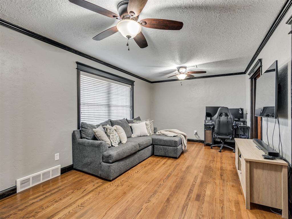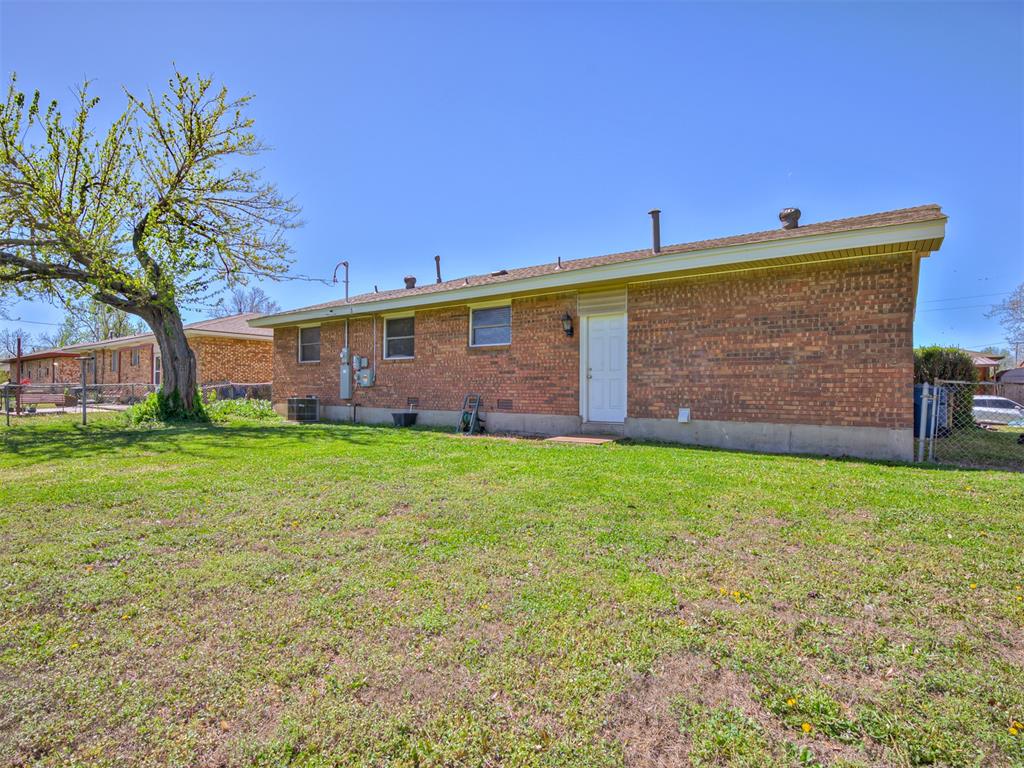 SEE SOLAR PANEL DETAILS BELOW! You won't believe how cute this updated house is! All your friends are going to want to live here! The perfect floor plan and no wasted space. You enter the home to a great room that has so much flexibility. It is currently being used as a large living room but has the option to be a living room with a dining room/office off to the side. You will have 3 good size bedrooms and 1 full bathroom that is fully updated. If you don't need 3 bedrooms you could use the bedroom off the living room as a dining room, office, or flex space. There are so many options! The beautiful hardwood floors throughout compliment all the warm stained woodwork. You don't see that very often anymore! The kitchen has all stainless steel appliances (to include the refrigerator), granite countertops, and tons of cabinet space. The primary bedroom is the only room with carpet and it gives a warm cozy feeling for curling up to relax. This home is a rare find in this area with a 2 CAR GARAGE with a new garage door opener and includes a work bench! The large backyard is fenced and would be a great place to entertain. This home is conveniently located minutes away from Tinker AFB, I-40, three grocery stores, a hospital, and many shopping centers. You just have to see this beautiful home! **Solar Panels have the battery backup for added security anytime the power goes out! **The electric bills are credits from OG&E buying the extra production!! How often does the electric company PAY YOU for electric at your home? **Solar Panels have an assumable loan. They are transferable to the new owner. Buyer MUST be able to qualify for the balance of the LOAN on the solar panels when they purchase the home or they can pay them off at closing. These cannot be removed for the house to be sold. They significantly reduce the electric bill (6 months of bills in supplements showing credit each month).
