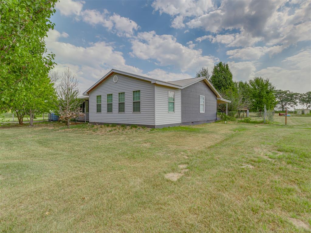 TIME TO GET OUT OF THE CITY!!! Looking for the perfect HOMESTEADING property? This is it! NO RESTRICTIONS or HOA but still close to town. This stunning gated 3.54 acre estate (MOL) features a beautifully updated 3 or 4 bedroom, 2 bathroom home, perfect for building a sustainable lifestyle or just creating a peaceful retreat. The 4th bedroom offers an optional office/studio/bonus room. Enter this updated home from the large covered front porch into an oversized entry/foyer. Continue into a spacious living room with tall ceilings with a wood beam & wood floors creating a warm & welcoming atmosphere. The living room is open to a huge dining room with built in cabinets, exterior french doors & lots of natural light. The kitchen has been updated to include all new Samsung Suite Energy Efficient Appliances, granite countertops, single basin sink, new faucet, & upgraded cabinet hardware. The kitchen opens into the laundry/mud room with tons of cabinets & pantry for storage. The huge covered back patio invites you to enjoy evenings relaxing or entertaining guests. All bedrooms are a nice size with large closets.The property boasts a versatile tandem 2-car garage, providing ample space for vehicles and storage. Outside, you'll find multiple fenced areas with shelters designed for various animals, ensuring security and comfort for your livestock or pets. Garden enthusiasts will appreciate the open spaces separate from the livestock areas for growing each seasons harvest. The presence of multiple fruit trees offers both beauty and the potential for homegrown fruit harvests. You can cultivate your own vegetables, fruits, flowers, and livestock embracing a sustainable lifestyle. This homestead combines modern comforts with the charm of rural living and the convenience of town nearby, making it an ideal setting for those looking to embrace a self-sufficient lifestyle Situated minutes to I35, halfway between Dallas & OKC. This home has too many updates to list!