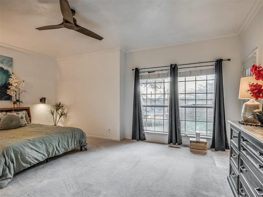 The private primary suite is a serene retreat with dual vanities, a jetted soaking tub, walk-in shower, and direct patio access. A flexible study on the main level offers French doors and built-ins, while the upstairs bonus room (or 4th bedroom) creates the perfect space for play, work, or movie nights.